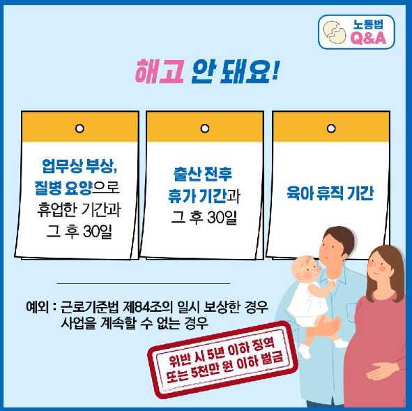 • 해고사유가 있더라도 해고가 절대 금지된 기간